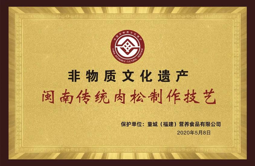 08-17【再獲喜報(bào)】童城食品閩南傳統(tǒng)手工肉松榮獲 “非物質(zhì)文化遺產(chǎn)” 稱號