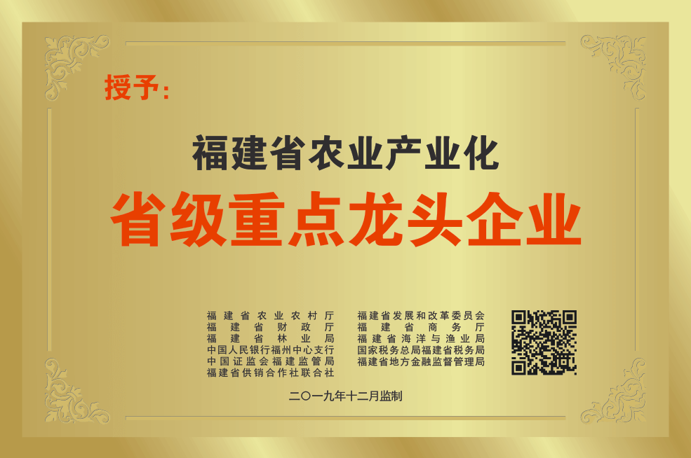 喜訊:熱烈祝賀童城食品榮獲福建省級重點龍頭企業稱號!